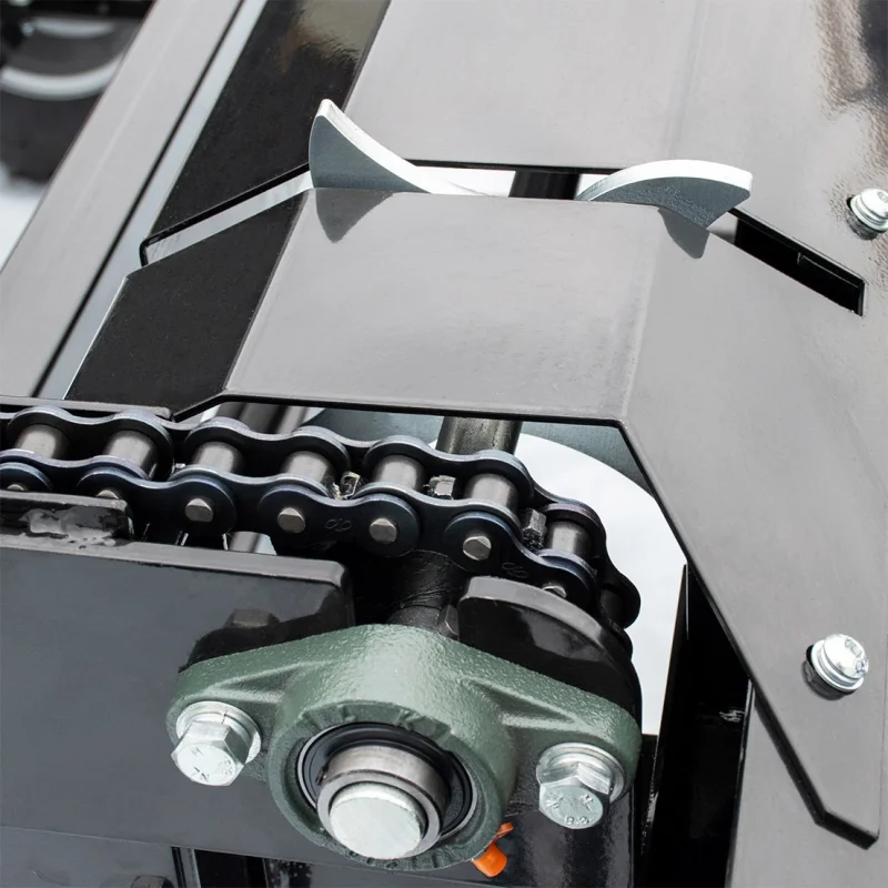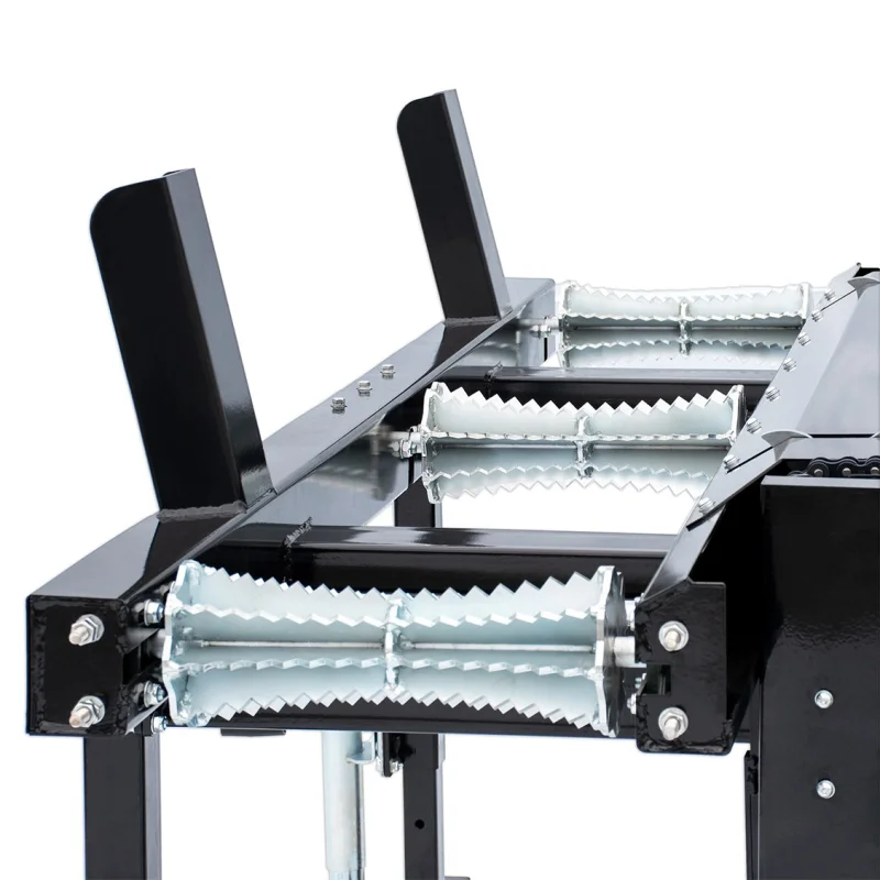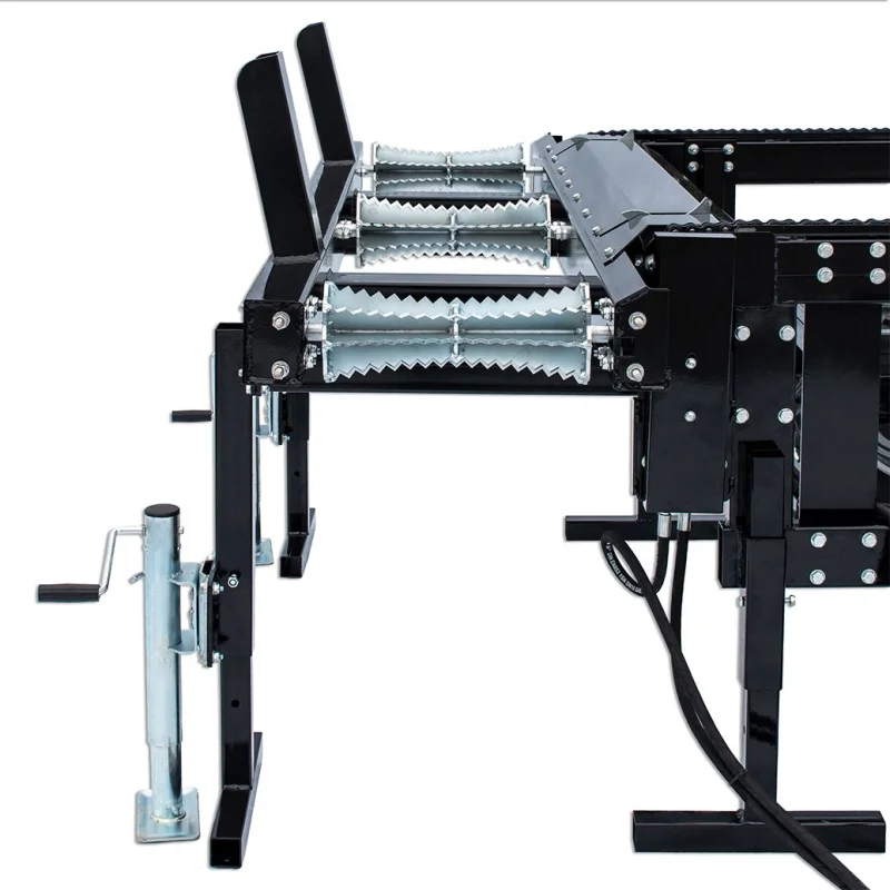 Hidraulični dovodni transporter za WPO-500, nosivosti do 3000 kg. Robusna izvedba, 3 dovodna valjka i hidrauličko upravljanje za siguran i učinkovit rad.