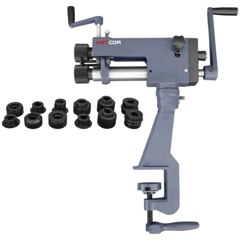 Žljebarka za lim METCOR RM08 omogućuje ručno oblikovanje lima izrađenog od mekog čelika i njegovih ekvivalenata. Konstrukcija izrađena od lijevanog željeza i čelika minimizira deformacije obrađivanog materijala, osiguravajući visoku preciznost rada. U kompletu se nalazi šest parova valjaka koji omogućuju raznovrsne metode obrade lima.