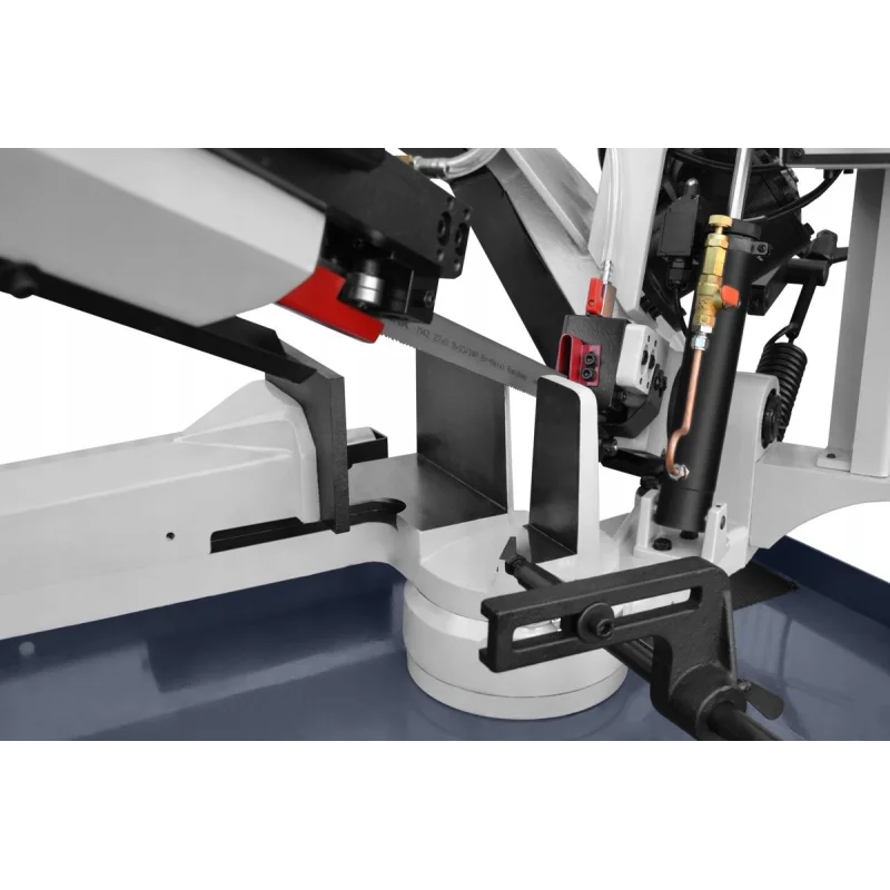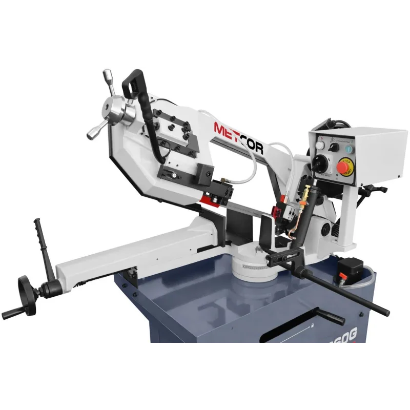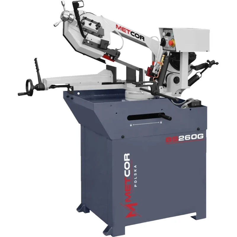 Tračne pile METCOR BS260G, zahvaljujući opremi s hidrauličkim cilindrom, hlađenjem i zakretnom rukom do 60 stupnjeva, u kombinaciji s pilama renomirane njemačke tvrtke Roentgen, nalaze široku primjenu u svim bravarskim radionicama gdje su važni preciznost, kvaliteta i brzina rezanja. Tračna pila ima ugrađeni sustav hlađenja s cirkulacijom emulgol tekućine, namijenjen za učinkovito hlađenje zone rezanja, što povećava vijek trajanja trake i poboljšava kvalitetu rezanja. Čvrsta i masivna konstrukcija ruke jamči stabilan rad uređaja, što se izravno odražava na visoku preciznost rezanja. Stroj ima automatski prekidač u slučaju pucanja rezne trake.