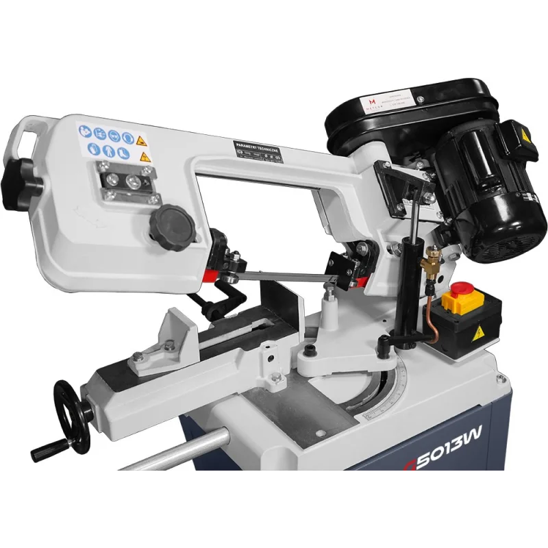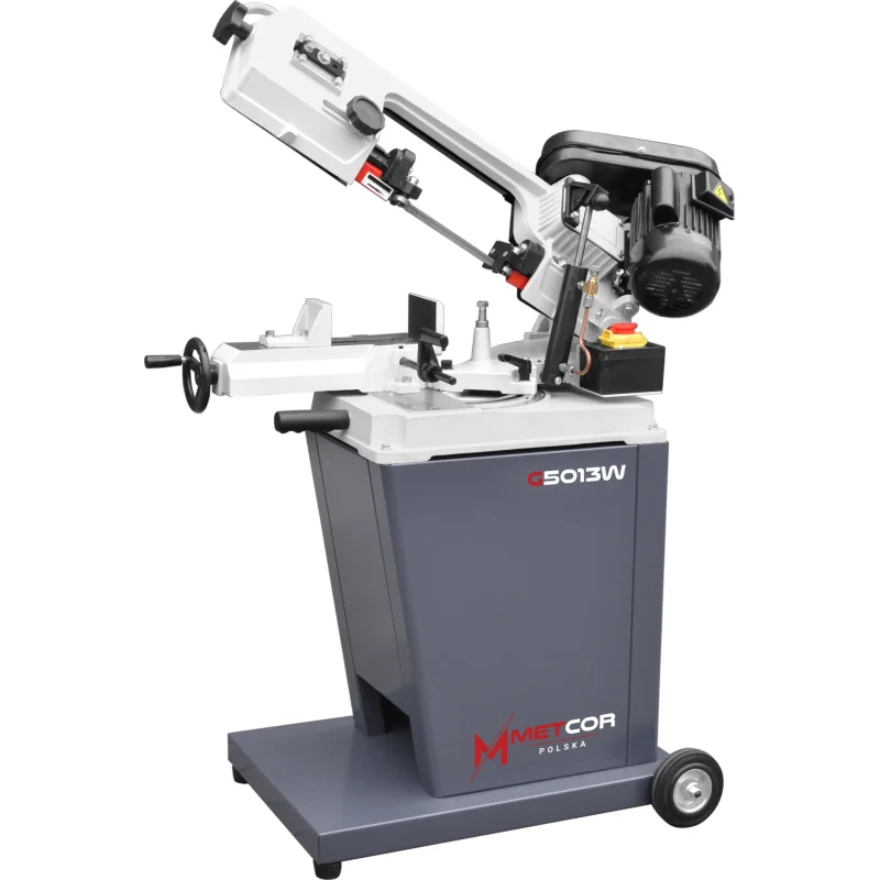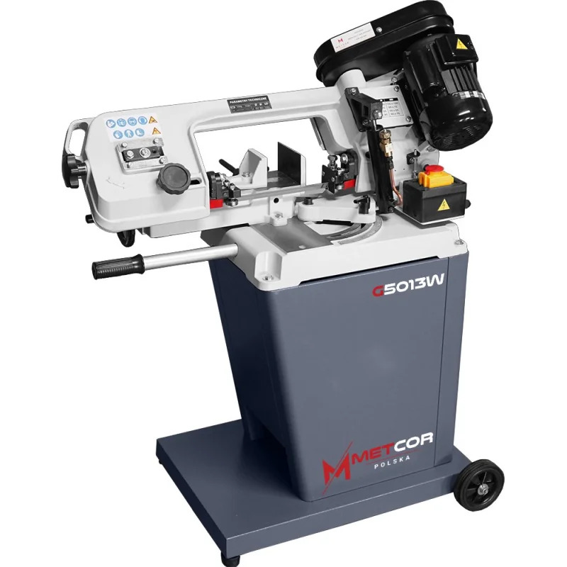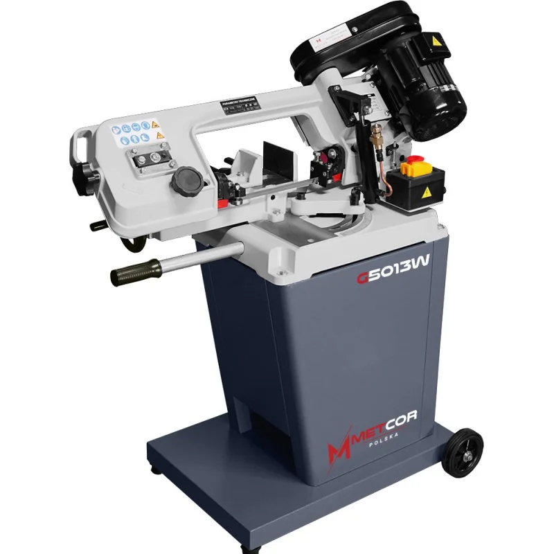 Povoljna tračna pila za rezanje metala METCOR G5013W s optimalnim rasponom rezanja, namijenjena profesionalnim obrtnicima, ističe se učinkovitošću i jednostavnošću korištenja. Ima zakretno rame u oba smjera, što je velika prednost pri rezanju materijala pod kutom. Unatoč malim dimenzijama, ali velikoj težini (103 kg), stroj je vrlo stabilan i ne vibrira tijekom rezanja većih materijala - za razliku od strojeva manje težine.