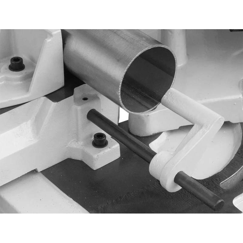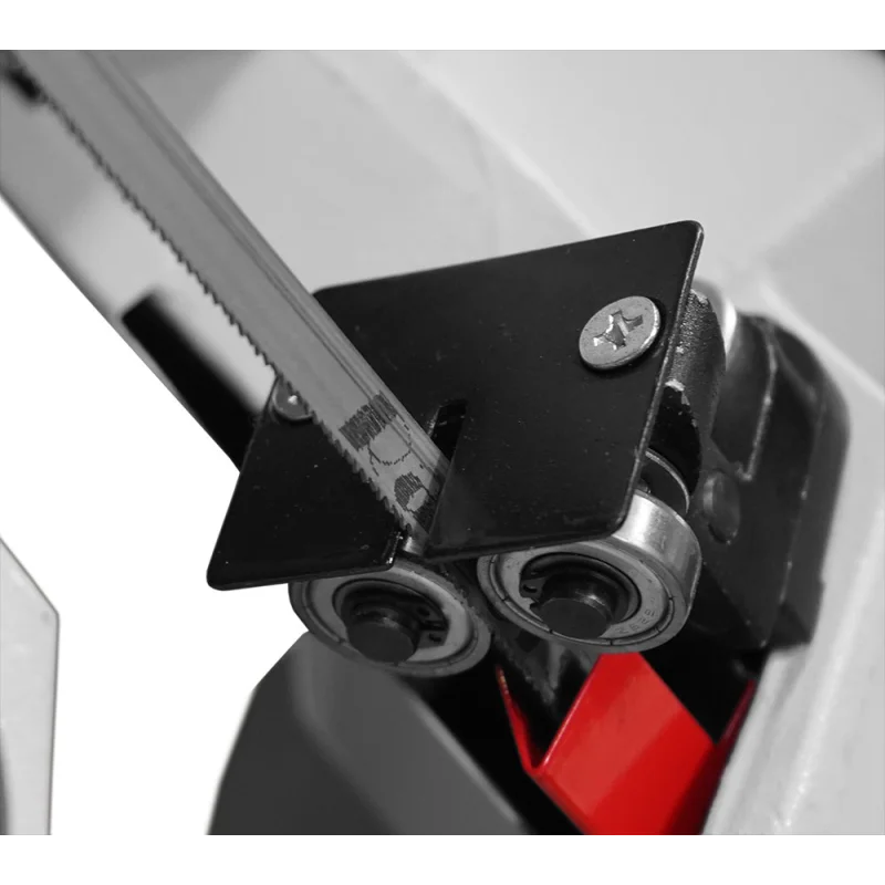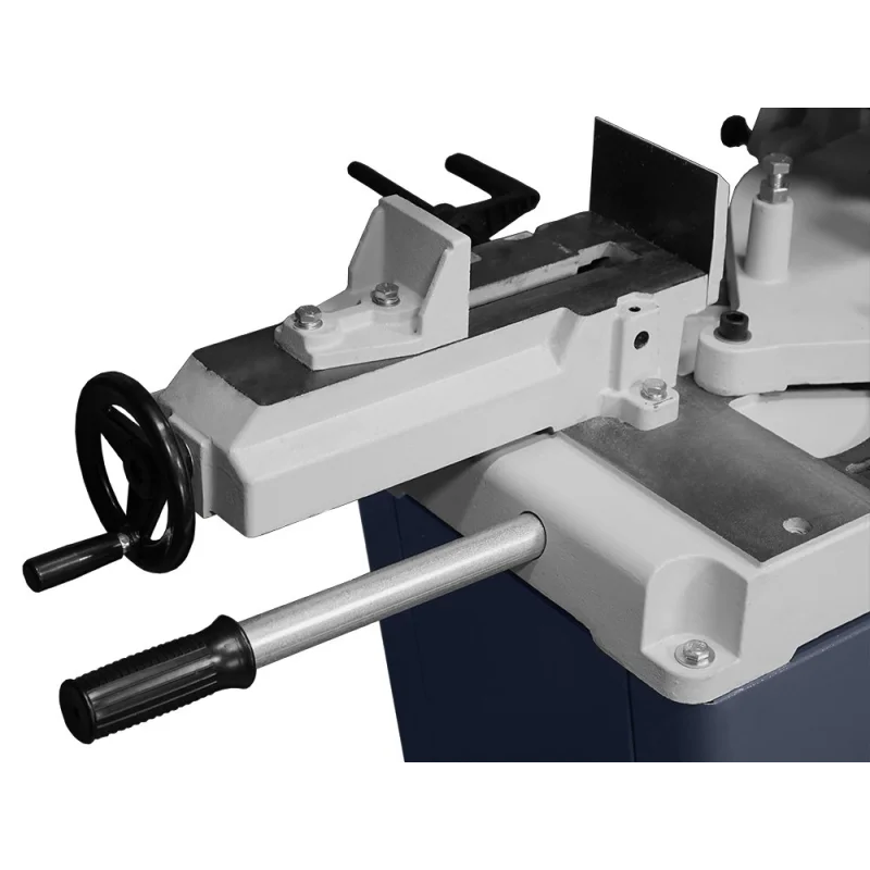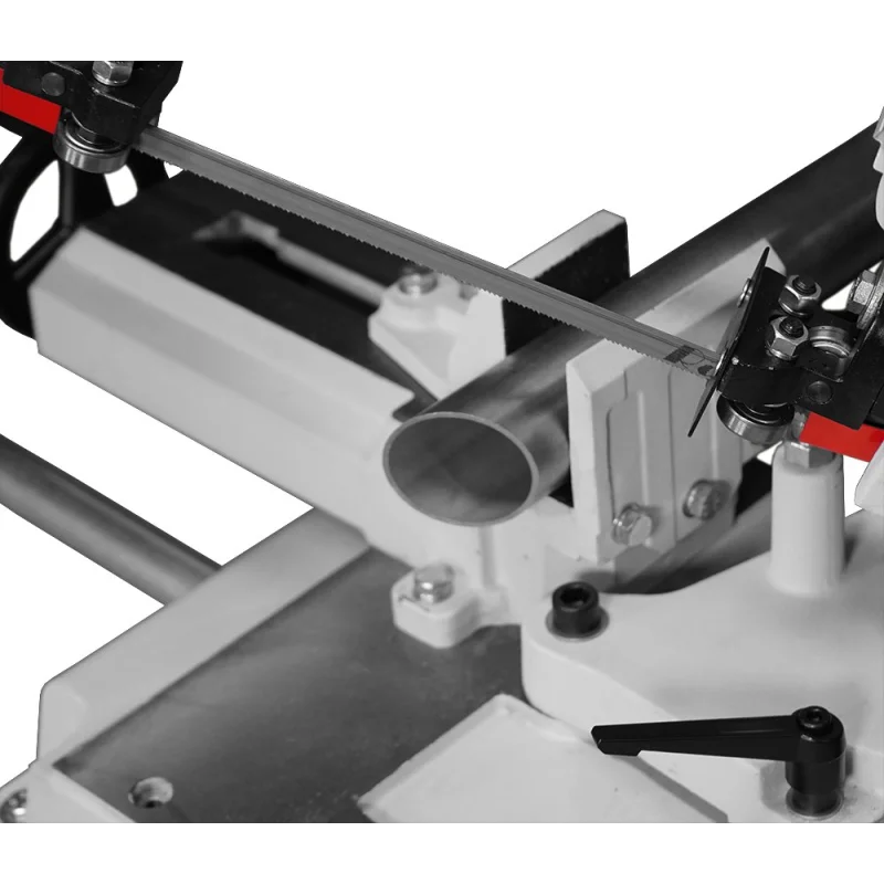 ↗️Konstrukcija ramena dizajnirana je tako da se horizontalno rame u kratkom vremenu može pretvoriti u vertikalnu pilu. Ovo rješenje odlično funkcionira ne samo pri rezanju metala, već može poslužiti i kao vertikalna ubodna pila za stolarske radove, rezanje aluminija, drva i sličnih materijala.