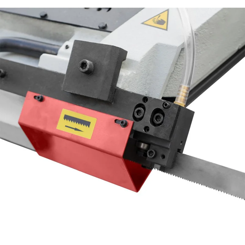 Okvir pile izrađen je od jedinstvenog lijevanog željeza, a široka traka za rezanje (27 mm) omogućuje izvođenje višeserijskih rezova kako profila, tako i čvrstih materijala. Stroj ima držač postavljen na podesivom stolu s brzim stezanjem. Učinkovita pumpa za hlađenje s zatvorenim krugom osigurava optimalne uvjete rada.