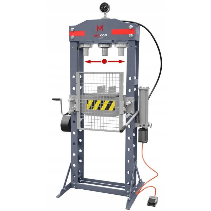 Hidraulično-pneumatska radionica preša TL0500BA 30T od Metcor Polska ključno je sredstvo u automehaničarskim radionicama, pronalazeći široku primjenu u mnogim servisnim i popravnim procesima. Izvrsno se koristi za ravnanje osovina i valjaka, kao i za montažu i demontažu ležajeva, čepova, čahura i drugih mehaničkih elemenata. Njena svestranost omogućuje učinkovito raditi kako na osobnim automobilima, tako i na dostavnim i teretnim vozilima.