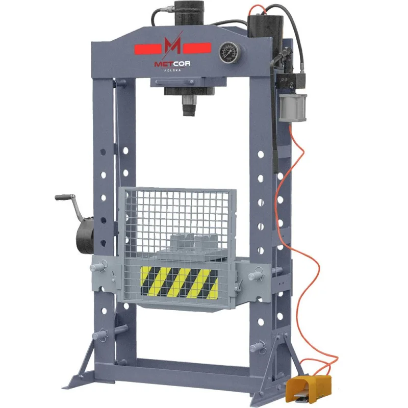 Hidraulično-pneumatska radionica preša TL0500BA 75T od Metcor Polska. Impresivna sila pritiska od čak 75 tona (750 kN). Profesionalna, europska hidraulično-pneumatska preša Metcor TL0500BA 75T dizajnirana je s ciljem postizanja najveće učinkovitosti i preciznosti, savršeno se uklapajući u zadatke popravka, montaže te u procesima obuke.