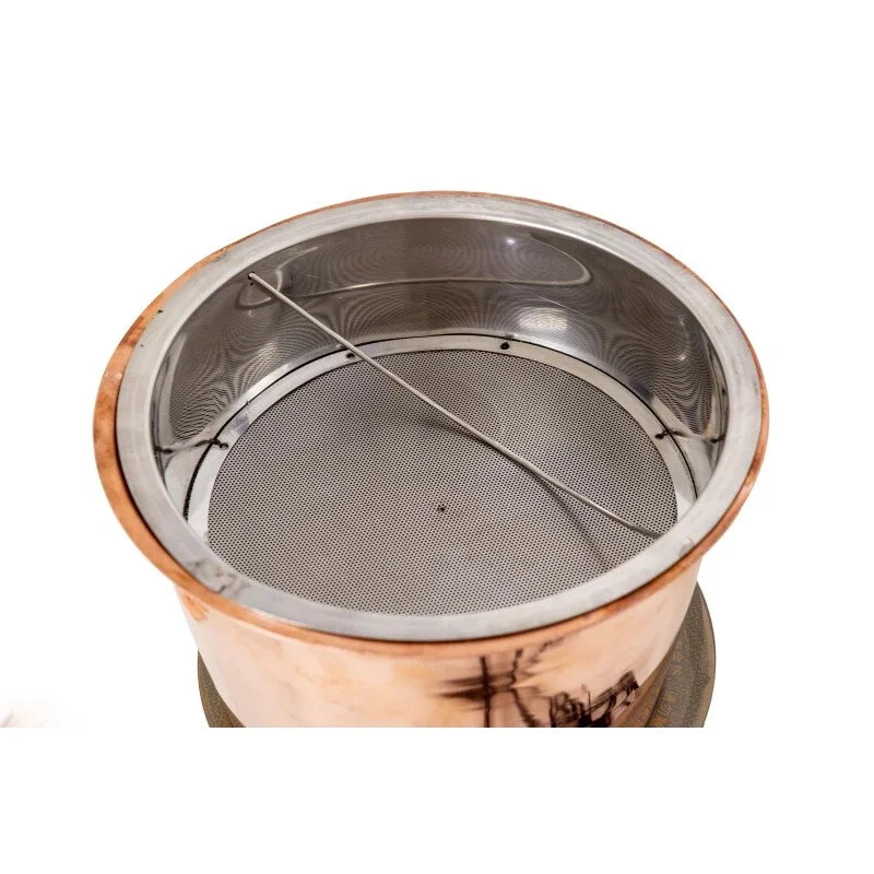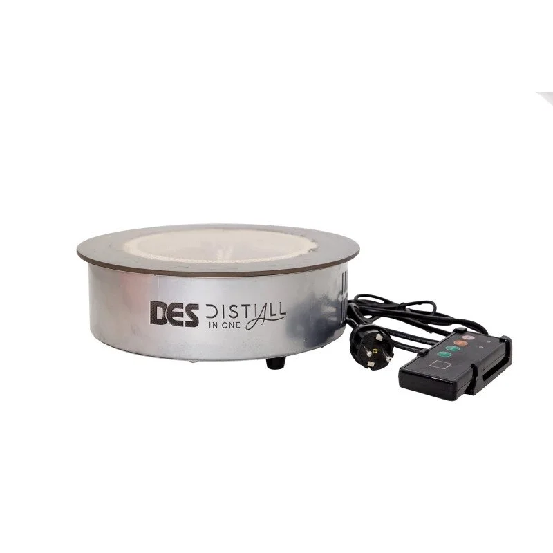 Proizvod sadrži vlastiti izvor električnog zagrijavanja od 2 kW, bakrenu posudu i kapu, koje su spojene brzim spojnicama. Protočni hladnjak uređaja je potpuno izrađen od bakra, kompaktan i učinkovit te osigurava odgovarajuće hlađenje tijekom procesa destilacije. Za precizno podešavanje protoka vode ugrađen je precizan slavinu, a potrošnja vode uglavnom ovisi o temperaturi vode u mreži. Set uređaja uključuje kromiranu košaru koju možete koristiti kada destilirate aromatične biljke za proizvodnju eteričnih ulja, alkoholna pića poput džina ili kada želite dodati dodatnu aromu Vašem voćnom destilatu. Ako destilirate druge vrste pića poput voćnih rakija ili viskija, košara se lako može ukloniti. Za mjerenje temperature pare tijekom procesa destilacije ugrađen je precizan digitalni termometar. Uređaj radi u otvorenom sustavu cirkulacije pare, a za dodatnu sigurnost na poklopcu uređaja postavljen je sigurnosni ventil koji će otpustiti paru u malo vjerojatnom slučaju stvaranja većeg tlaka u uređaju.