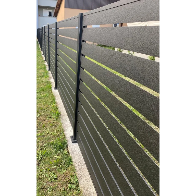 Čelična modularna ograda 120 x 200 cm (V x D), obložena zaštitnim slojem cinka, 8 horizontalnih letvica/panela, jednostavna montaža, 15 godina garancije.