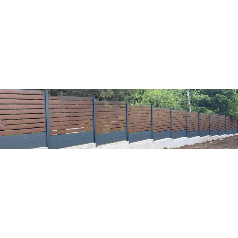 Modularna panel ograda izrađena je od obloženog čelika prekrivenog slojem cinka. Svaka letvica/panel premazana je posebnim zaštitnim i dekorativnim slojem u imitaciji različite vrste drveća ili različite boje.