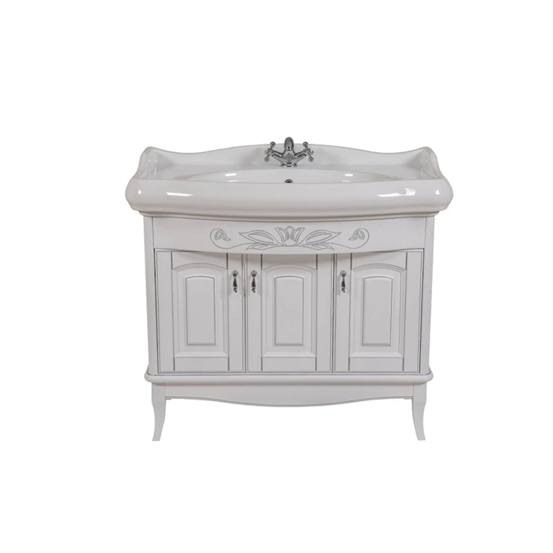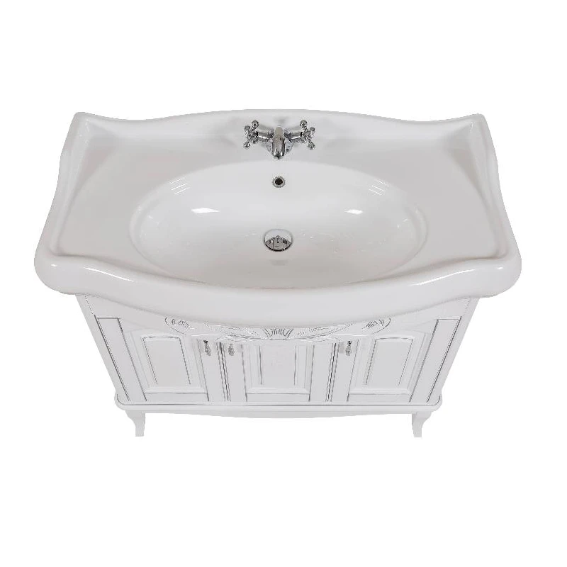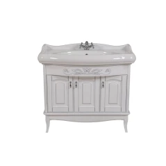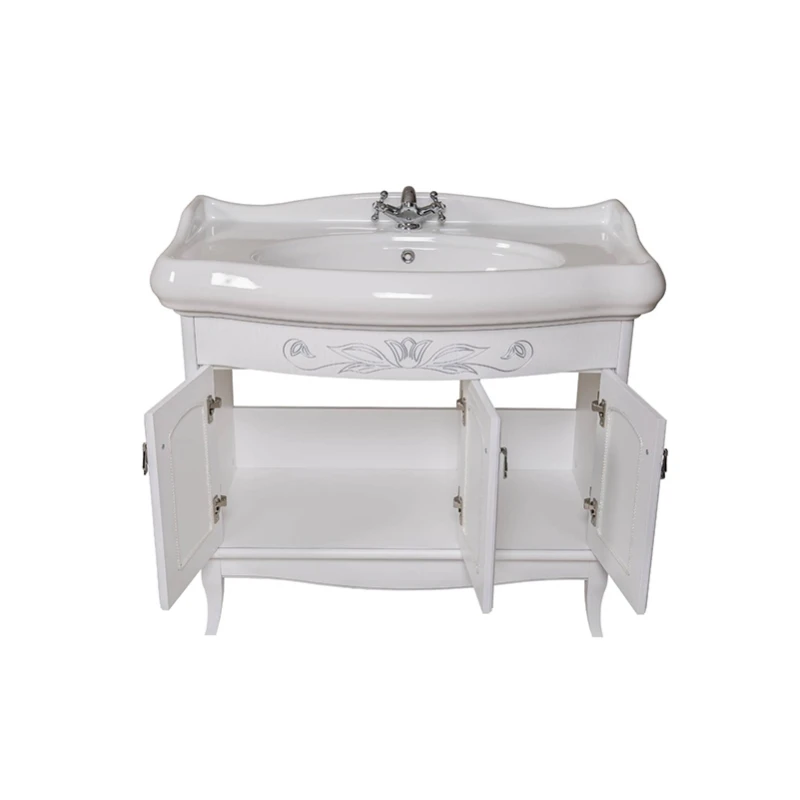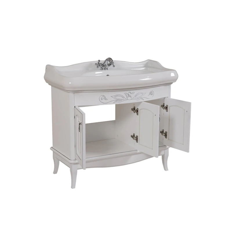 Podni kupaonski ormarić Mikela bijele mat boje s keramičkim umivaonikom, širine 100 cm.