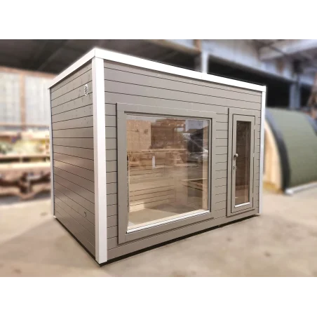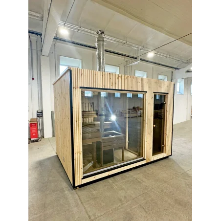 Opuštajuća vanjska sauna od 4m2! Idealna za 2-3 osobe, ova finska sauna od borovine pruža vrhunski wellness doživljaj. Sauna kabina dolazi s dvostrukim prozorima, vratima s bravom i klupama. Odaberite krov u boji, Harvia peć, LED rasvjetu i druge dodatke.